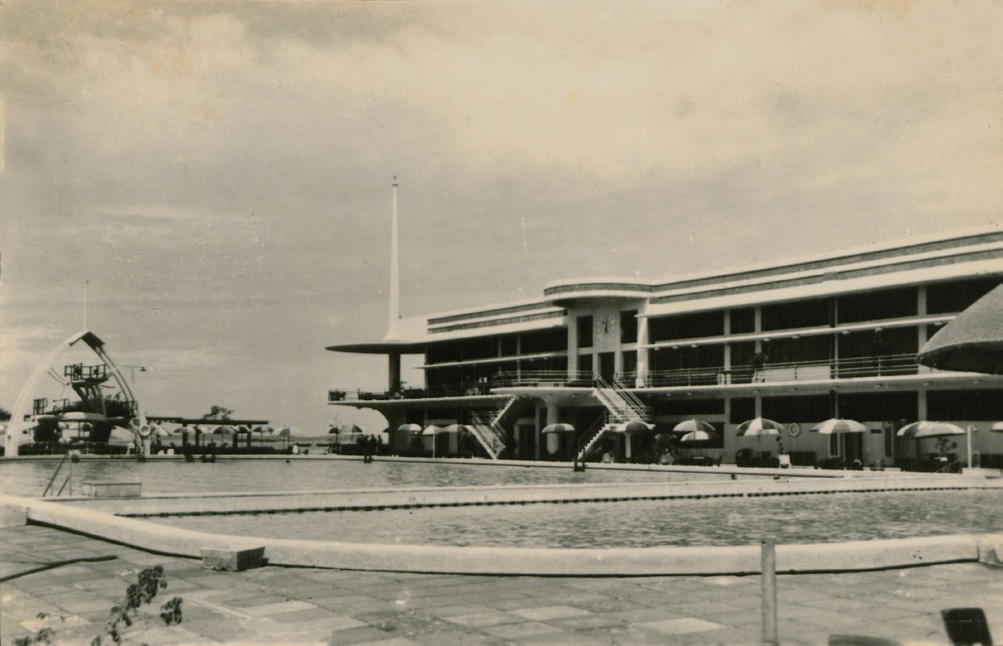 The Chinese Swimming Club followed this example, redeveloping their site to build a new clubhouse and a pool known as the Lee Kong Chian Swimming Pool in 1938.98 The new designs created by the swimming clubs, as with the inland European social clubs, embraced the visual language of modern architecture. They left behind the old vernacular of Singapore’s swimming places, and established a new image of leisurely swimming environments that embraced modern concrete construction, new technologies, and the graceful sweeping lines of modernist and streamlined architecture.