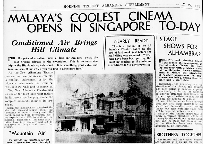 “Grand New Alhambra Opens with Excellent Film,” Morning Tribune, 28 July 1938, 3. (From NewspaperSG) ↩